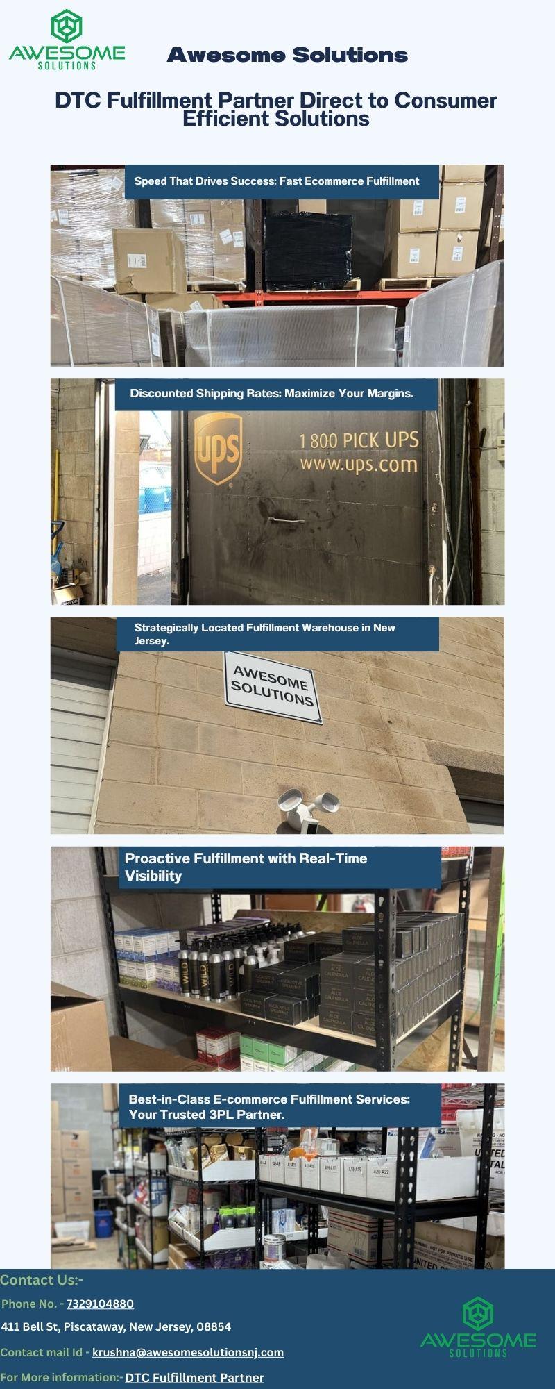 Work with a dependable DTC Fulfillment Partner at Awesome Solutions, providing fast direct-to-consumer shipping, accurate order processing, and seamless logistics for your eCommerce store.